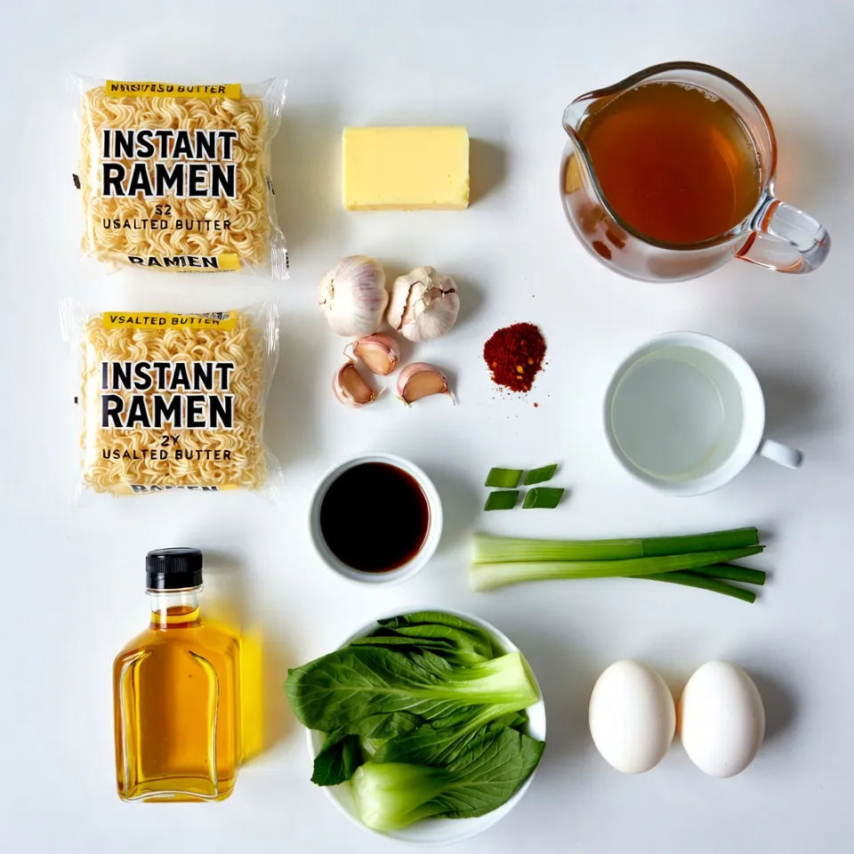 To make Spicy Garlic Butter Ramen, you need simple yet tasty ingredients. Here’s what you will need: