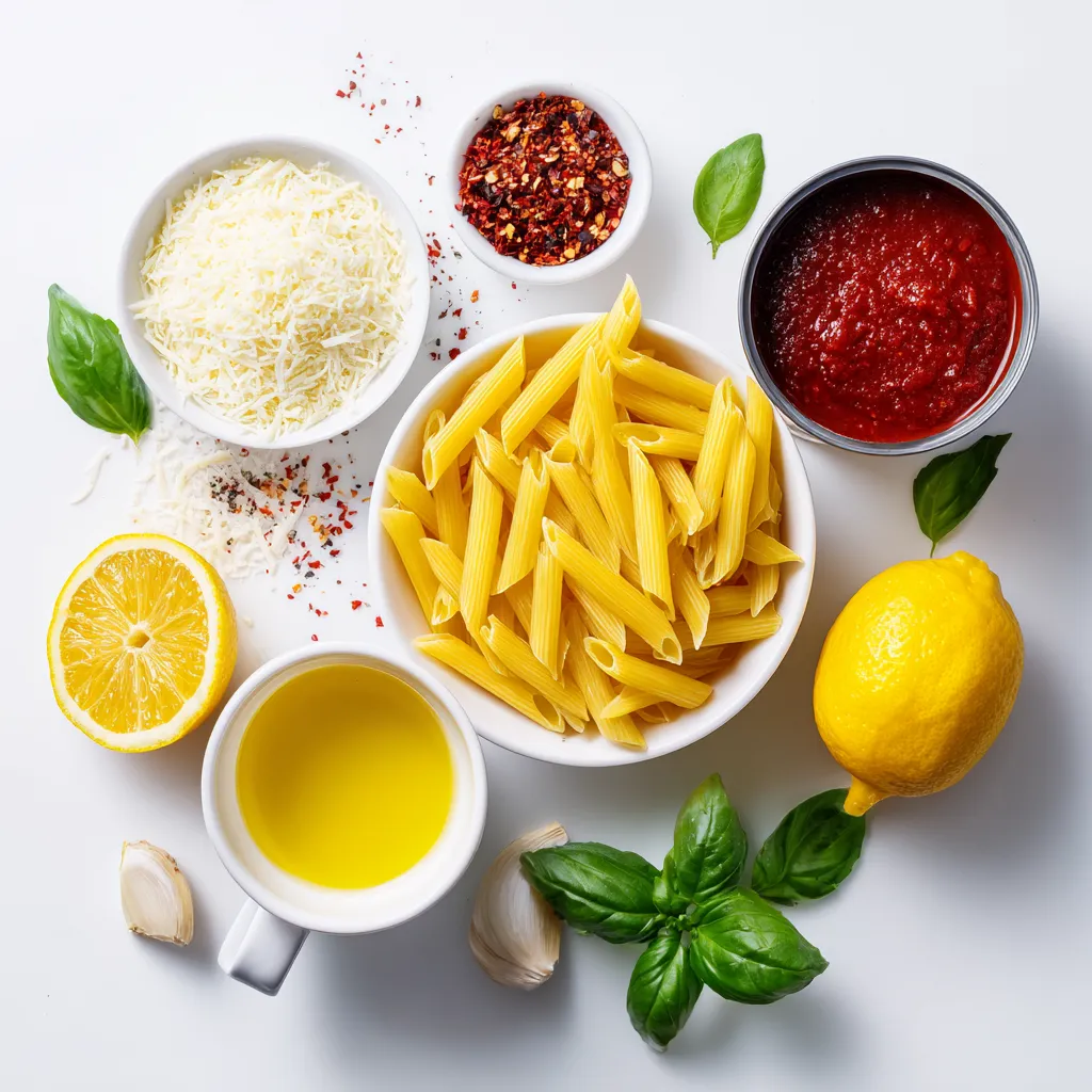 Gathering these ingredients is key to making Spicy Gigi Hadid Vodka Pasta. Start with the penne pasta. It cooks well and holds sauce nicely. The olive oil adds flavor and helps cook the garlic. Minced garlic gives a great aroma when it heats. Red pepper flakes add the spice, so use as much as you like.