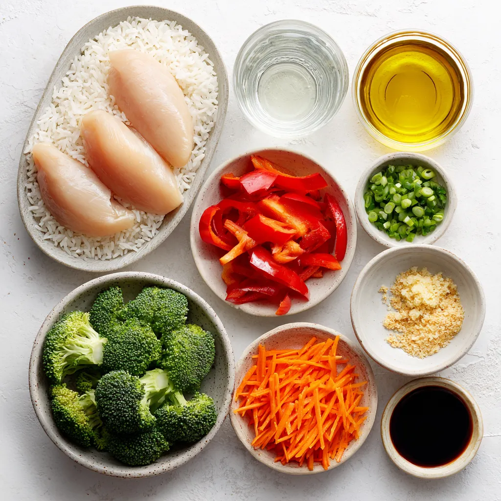 The main ingredients create the heart of this dish. The chicken provides lean protein. Jasmine rice offers a soft and fragrant base. Fresh veggies add color and nutrients. Each element plays a role in making this bowl delightful.