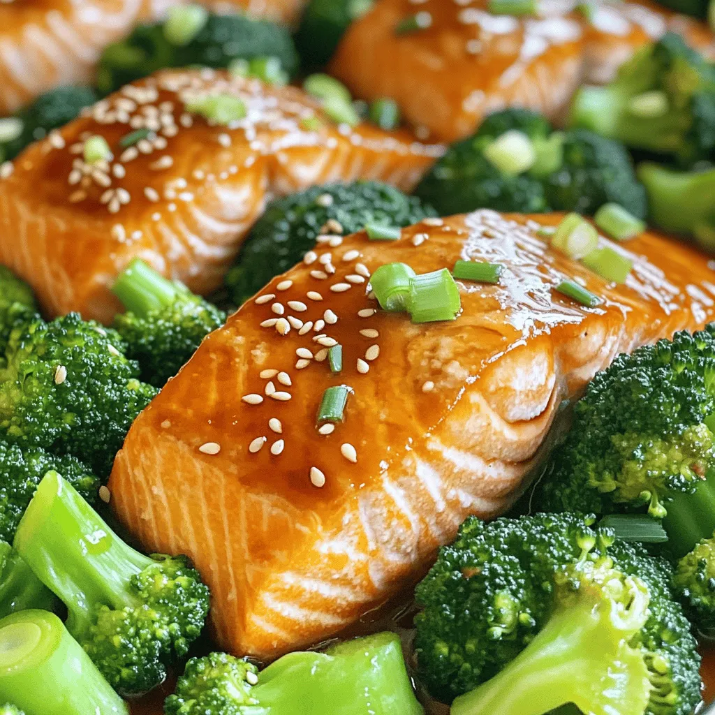 The salmon fillets are the star of this dish. They provide rich flavor and healthy fats. Broccoli florets add crunch and bright color. The teriyaki sauce combines soy sauce, honey, rice vinegar, sesame oil, garlic, and ginger. This sauce brings a sweet and savory taste that pairs perfectly with salmon.