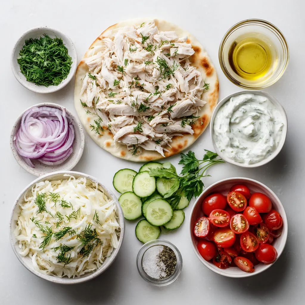 - Pre-made pizza crust options You can choose a store-bought crust or make your own. Both options work well. - Chicken preparation options Use 1 cup of cooked chicken breast. Shredded chicken is best for easy topping. - Tzatziki sauce ingredients For the sauce, you need: - 1 cup Greek yogurt - 1 cucumber, finely grated and drained - 2 garlic cloves, minced - 1 tablespoon lemon juice - 1 teaspoon dried dill or 1 tablespoon fresh dill, chopped - Salt and pepper to taste - Cheese selection I recommend 1 cup of shredded mozzarella cheese. It melts nicely and adds great flavor. - Vegetable toppings Use 1/2 cup cherry tomatoes, halved, and 1/4 red onion, thinly sliced. These add freshness and color. With these simple ingredients, you can create a tasty Tzatziki Chicken Pizza that everyone will love. {{ingredient_image_1}} To make the tzatziki sauce, start with a bowl. Add 1 cup of Greek yogurt. Next, grate 1 cucumber finely and drain it to remove excess water. This step keeps the sauce thick. Then, mince 2 garlic cloves and add them to the bowl. Squeeze in 1 tablespoon of lemon juice. Finally, mix in 1 teaspoon of dried dill or 1 tablespoon of fresh dill. Season the mixture with salt and pepper to your taste. Stir everything well and set it aside. This sauce gives a fresh taste to your pizza. Now, let’s get the oven ready. Preheat your oven to 475°F (245°C). This high heat helps create a crispy crust. Make sure to do this step while you prepare the other ingredients. A hot oven will make your pizza come out perfectly. Grab your pre-made pizza crust. If you made it at home, roll it out on a pizza stone or a baking sheet. Spread a generous layer of the tzatziki sauce on the crust. Leave a small border around the edges for the crust. Next, take 1 cup of shredded chicken breast and sprinkle it evenly over the sauce. Then, add 1 cup of shredded mozzarella cheese on top of the chicken. This cheese will melt and become gooey. Scatter 1/2 cup of halved cherry tomatoes and 1/4 of a thinly sliced red onion over the cheese. Your pizza is now ready for the oven! Place the assembled pizza in your preheated oven. Bake for 12 to 15 minutes. Keep an eye on it. You want the crust to be golden brown. The cheese should be bubbly and slightly browned. This is the moment when your kitchen will smell amazing! Once the pizza is baked, take it out of the oven. Let it cool for a couple of minutes. Drizzle a bit more tzatziki on top for extra flavor. Then, sprinkle fresh parsley or mint for a bright touch. Cut the pizza into slices and serve it warm. Enjoy this tasty twist on a pizza! To make great tzatziki sauce, start with thick Greek yogurt. Use fresh cucumber for the best taste. Grate the cucumber finely, then drain it. This step keeps your sauce from being watery. Add minced garlic for a strong flavor. A bit of lemon juice brightens the sauce. Mix in dill for a nice herbal note. Season with salt and pepper to balance the taste. Let the sauce sit for a bit. This allows the flavors to blend well. You can grill the pizza for a smoky flavor. Use a grill-safe pizza stone or cast iron pan. Preheat the grill to medium heat. Place the pizza on the grill, close the lid, and cook for about 10 minutes. Keep an eye on it to avoid burning. You can also use a stovetop pan if you don’t have a grill. Cook on low heat, covering with a lid. You’ll get a crispy crust without the oven. If you don't have Greek yogurt, sour cream works well too. For a dairy-free option, use coconut yogurt. You can swap chicken for vegetables like bell peppers or mushrooms. If you don’t have dill, try oregano or thyme. Use any cheese you like; feta adds a salty kick. For crust, consider using cauliflower crust for a low-carb choice. Adjust these swaps to fit your taste and diet. Pro Tips Chill the Tzatziki: For the best flavor, prepare the tzatziki sauce ahead of time and let it chill in the refrigerator for at least 30 minutes before using. This allows the flavors to meld beautifully. Use Fresh Ingredients: Opt for fresh herbs and high-quality chicken for a more vibrant and flavorful pizza. Fresh dill and juicy, ripe tomatoes will elevate your dish. Control the Moisture: When grating the cucumber, be sure to drain it well to avoid excess moisture on the pizza, which can make the crust soggy. Experiment with Toppings: Feel free to add other toppings like olives, bell peppers, or feta cheese to customize your tzatziki chicken pizza to your taste! {{image_2}} You can make a tasty vegetarian version of Tzatziki pizza. Swap the chicken for veggies. Try using bell peppers, mushrooms, or spinach. These add flavor and color. You can also add chickpeas for protein. This way, you keep the dish filling and healthy. If you need a gluten-free crust, there are great options. Look for pre-made gluten-free crusts at the store. You can also make your own using almond flour or cauliflower. Both options taste great with the tzatziki sauce. Just follow the same baking instructions for a perfect pizza. You can add extra flavors to the tzatziki sauce. Mix in spices like cumin or paprika for a twist. Fresh herbs like basil or oregano can brighten the taste. You could even add a pinch of chili flakes for some heat. Try different combinations until you find your favorite! After you enjoy your Tzatziki Chicken Pizza, let it cool. Place any leftovers in an airtight container. This keeps the pizza fresh. Store it in the fridge for up to three days. For best taste, eat it within two days. To reheat the pizza, use your oven for the best results. Preheat your oven to 350°F (175°C). Place the pizza on a baking sheet. Heat it for about 10-15 minutes. This warms it up without making it soggy. You can also use a skillet on the stove. Heat on low for about 5-7 minutes, covering it with a lid. This helps the cheese melt again. If you want to save the pizza for later, freezing is a great option. Wrap the pizza tightly in plastic wrap, then in aluminum foil. This keeps out air a