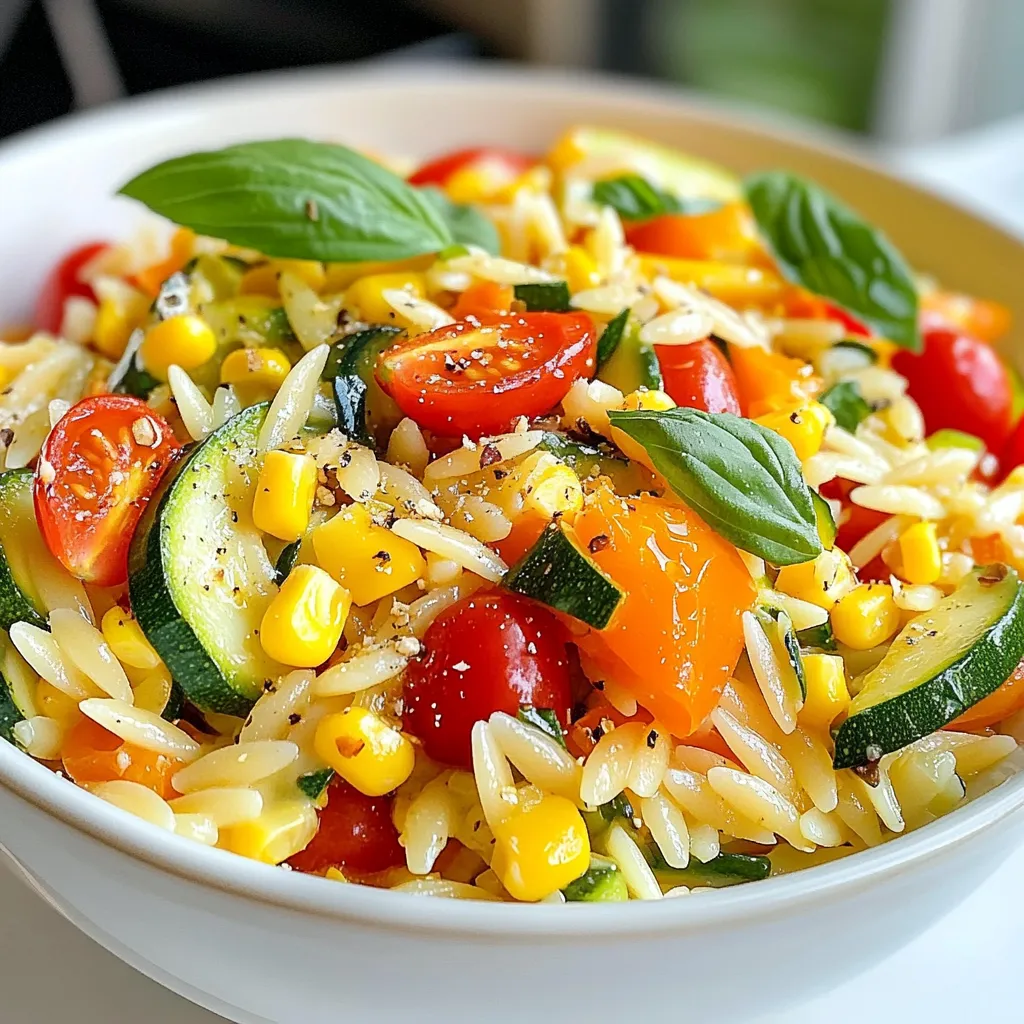To make veggie orzo fun, presentation matters. Use bright plates to show off the colors. Create fun shapes with the veggies. You can even make a smiley face with the cherry tomatoes and zucchini! Kids love playful food.
